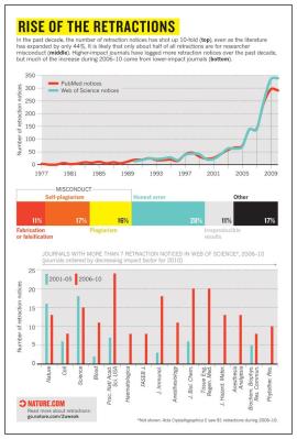 One of the problems with scientific research is the fact that retractions happen. They have been on the rise recently as well. There have been some high profile instances which have had some serious ramifications. one of these cases was in the prestigious Lancet from the UK and it involved a sample of 12 children and has caused the vaccine autism connection. In the graph below is a break down of the reasons for retractions. We need to be aware that mistakes do happen, but real fraud is completely unacceptable.